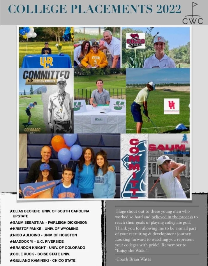 “My son and I have formed a great relationship with Coach Watts. Which makes sense because he’s a relationship person. Watts knows a ton about golf, college recruiting and, importantly, how to bridge the communication gap between high school athletes and college coaches. For parents and athletes, he is the Rosetta Stone we all seek to help us interpret the recruiting process and make the most of the opportunity. Coach Watts builds immediate rapport with student athletes and that puts him in a unique position to help athletes like my son interpret the tea leaves of the recruiting process and put their best foot forward.”
